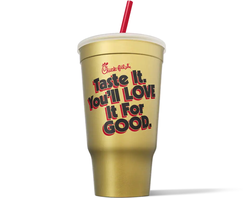 - Find Golden Fan Cup at Chick-fil-A for free entrées for one year